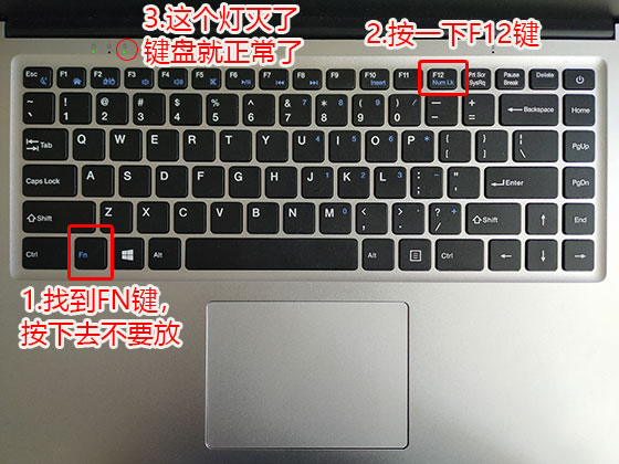 步骤二:同时按下Fn和Num Lock键